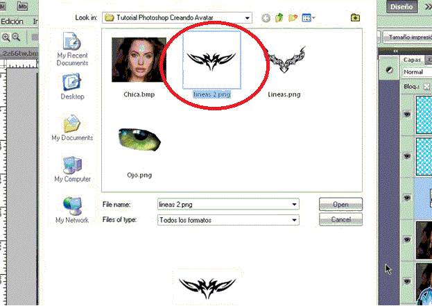 abrimos la imagen lineas 2.png y la colocamos en una nueva capa del trabajo pendiente