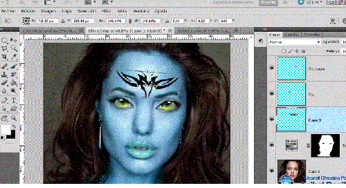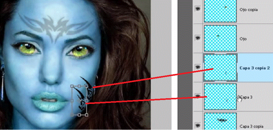 una ves volteadas las capas las arrastramos a la mejilla izquierda