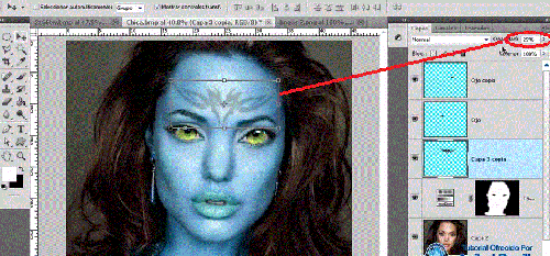 una ves colocada la imagen bajaremos la opacidad a 25 % para darnos este resultado