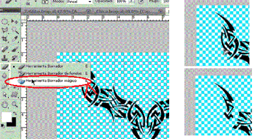 regresamos a lineas.png y seleccionaremos el borrador magico borando las lineas que no ocupamos hasta que no quede como nos muestra a imagen