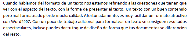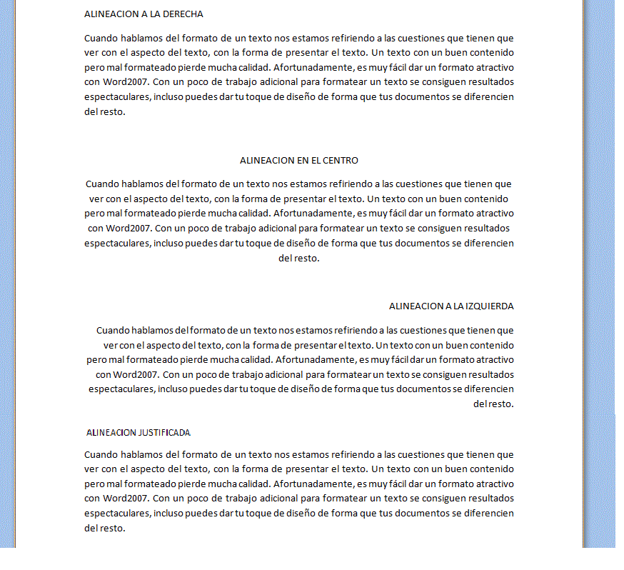 Una ves terminado el escrito que nos muestra la imagen copiaremos 4 veces el parrafo para aplicar los 4 tipos de alineacion